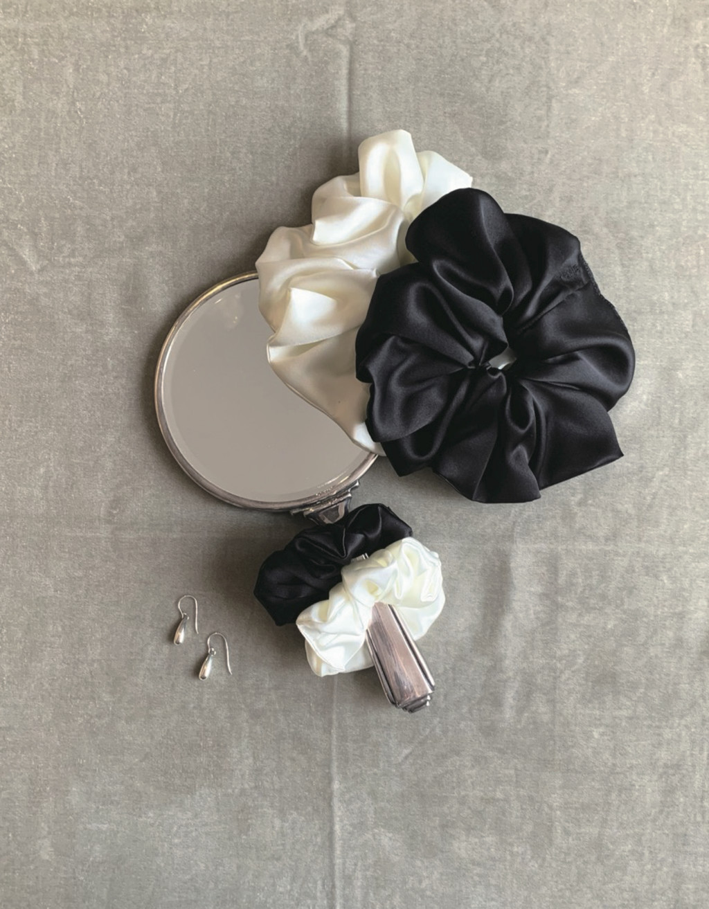 ・ 풍성함을 살린 가장 기본 디자인의 스크런치 ・ 부드럽고 은은한 광택의 실크 사틴 ・ 로고 자수 디테일 (Large 사이즈만 해당) ・ 기프트 박스 패키징 ・ Handcrafted in Korea |
