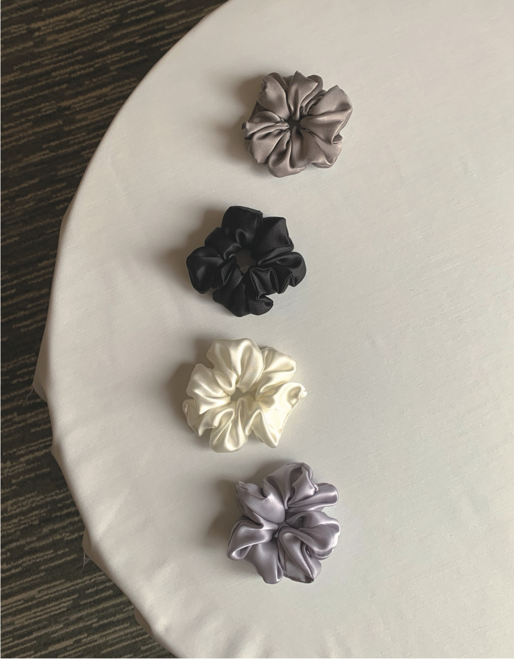 “타임리스 스크런치(Timeless Scrunchie)”는 시대에 구애 받지 않을 가장 기본적인 디자인의 스크런치입니다. 실크 사틴의 유려한 결이 돋보이도록 풍성함을 살렸고, 로고 자수 디테일을 은은하게 더하여 완성하였습니다. 라지 사이즈 단품으로 구매하시거나 원하는 컬러의 스몰 사이즈를 추가한 세트 구성을 합리적인 가격으로 만나실 수 있습니다. 시즌별 한정된 수량으로 제안하는 다채로운 컬러를 기대해주세요. 소중한 이를 위한 특별한 선물로 활용할 수 있도록 기프트 박스 패키징 서비스를 제공합니다. <컬러 안내> ・ Black : 단정한 느낌과 세련된 느낌을 동시에 주는 묵직한 블랙입니다. ・ Ivory : 노란 기가 강하지 않은 미색의 아이보리로, 어두운 의상에 밝은 느낌을 가미해줄 수 있는 컬러입니다. "카를라 스크런치"는 크림 톤으로, 조금 더 따뜻한 느낌의 아이보리입니다. ・ Dove : 연보랏빛이 도는 실버 톤의 컬러로, 빛의 반사에 따라 오묘한 빛을 냅니다. "노이에 태슬 펄스"의 입구 부분 배색 원단과 동일한 컬러입니다. ・ Ash : 그레이와 브라운을 모두 품고 있는 매력적인 컬러로 차분한 느낌을 줍니다. <옵션 선택 안내> ・ 라지 단품으로 구매 또는 라지 1 피스 당 스몰 1 피스를 세트 구성하여 구매하실 수 있습니다. 세트 구성 구매 시 한 박스에 세트 두 피스를 함께 포장하여 발송해 드립니다. ・ 단품과 세트 구성을 혼합하여 구매하시는 경우, 박스 패키징에 혼동이 있지 않도록 함께 포장되길 원하시는 제품들에 대해서 메모를 남겨주시면 감사하겠습니다. ・ 스몰 단품으로는 판매하지 않는 점 안내 드립니다. <교환 및 반품 불가 안내> 실크 소재의 헤어 제품은 소재 특성 상 단순 변심으로 인한 교환 및 반품이 불가한 점 안내 드립니다. 이 점 참고하시어 신중한 구매를 부탁 드립니다. |