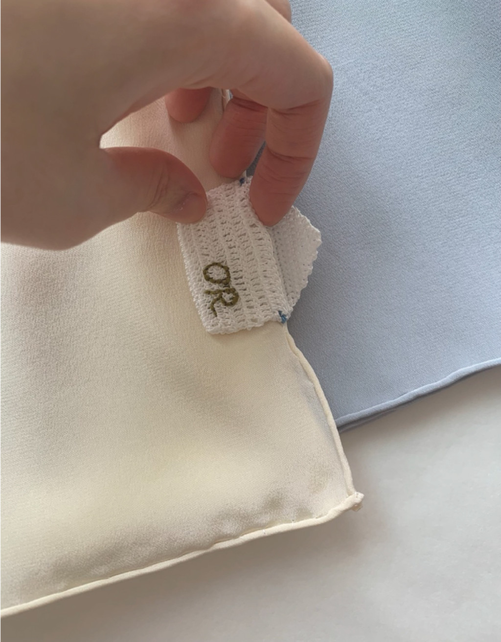 나의 미감을 담은, 소박하고 온기 있는 집, 구석 구석 발길이 익숙한 작은 마을, 계절마다 꽃나무들이 바뀌는 잘 가꿔진 정원과 그곳을 함께 누리는 귀여운 강아지들. “빌라 실크 스카프(Villa Silk Scarf)”는 내가 가장 많이 머무는, 나를 닮은 공간 속에서 언제나 포근하게 감싸고 싶은 스카프를 떠올리며 기획되었습니다. - 새벽 찬 기운 속의 산책, 한낮 고요한 작업 시간, 여름 밤 야외에서의 식사, 계절이 오가는 변덕의 날씨 속 그 언제든 나의 가장 익숙한 곳에서 꺼내 맬 수 있는. 오르케는 첫 스카프를 기획하며 실루엣과 색감, 마감, 그리고 이 스카프를 착용할 여성들의 뉘앙스에 집중하였습니다. 먼저 사계절 내내 목에 감싸는 느낌이 부드럽고 편안하도록 유려하게 흐르는 실루엣과 알맞은 두께감을 지닌 실크 원단을 사용하였습니다. 이 실크 원단은 부담스럽지 않게 은은한 광택감을 지녀 간결한 옷차림에도 자연스러운 생기를 줄 수 있습니다. 우아한 뉘앙스를 더할 수 있는 차분하고 온화한 색감들을 선별하여 여성들마다 자신만의 분위기를 완성할 수 있기를 의도했습니다. 또한 숙련된 장인들만이 가능한 핸드롤 헤밍(Hand-rolled hem) 마감으로 고급스러움을 높였습니다. 가볍게 한 번 두르거나 두 번 둘러 묶었을 때 모두 알맞게 떨어지도록 총 기장도 세심하게 고안되었습니다. 섬세한 수작업으로 제작한, 편지봉투 모양의 크로쉐 아트웍은 오르케의 새로운 시그니처 아트웍이자 제품마다 숨겨 놓은 작은 위트입니다. *Pale dove 제품은 다른 컬러의 제품들보다 미세하게 얇은 원단을 사용하였습니다. 목에 둘렀을 때 조금 더 가벼운 느낌을 줍니다. <교환 및 반품 불가 안내> 실크 100% 소재의 스카프 제품은 가벼운 시착만으로도 상품성을 잃을 수 있으므로, 단순 변심으로 인한 교환 및 반품이 불가한 점 안내 드립니다. 이 점 참고하시어 신중한 구매를 부탁 드립니다. |